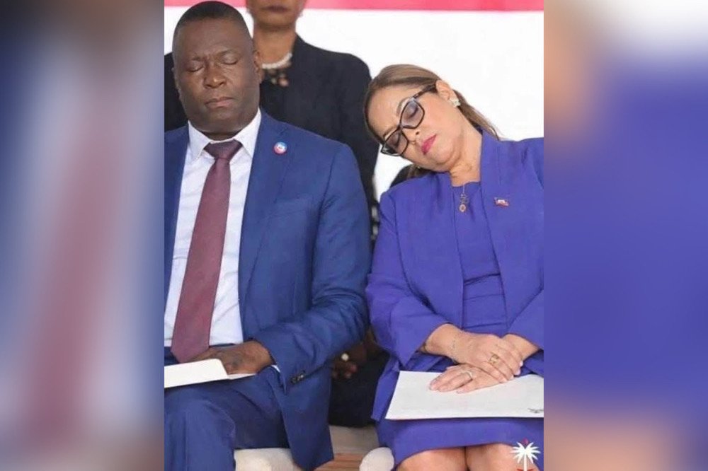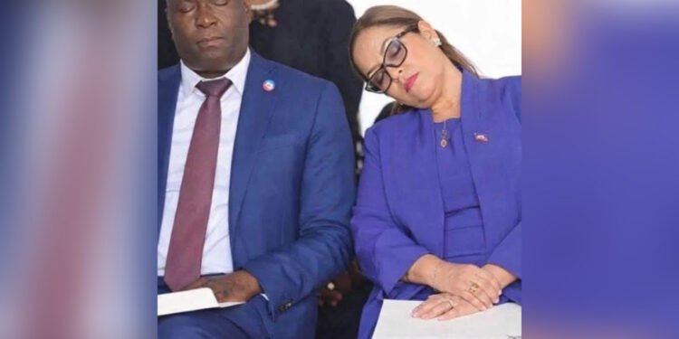 Une image présentée comme montrant la ministre des Affaires étrangères d’Haïti, Raina Forbin, en train de dormir lors d’une activité officielle circule largement sur les réseaux sociaux depuis quelques jours.